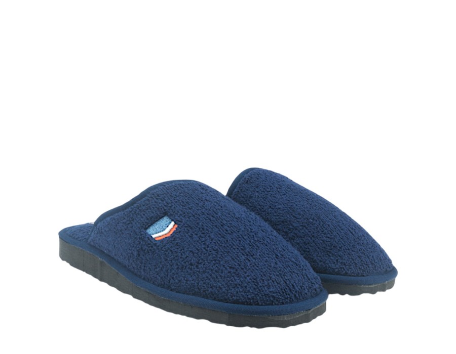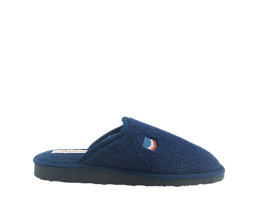Ανδρικές παντόφλες από την εταιρία KOLOVOS σε μπλε χρώμα από μαλακό ύφασμα και αντιολισθητική σόλα. Ιδανικές για να σας συντροφεύουν στις καθημερινές σας δραστηριότητες στο σπίτι!