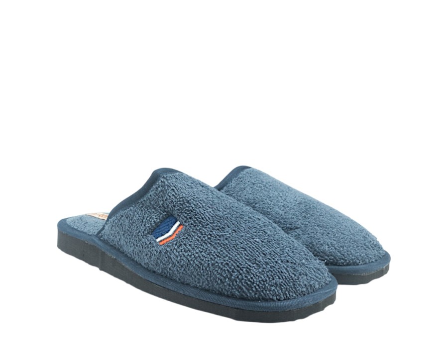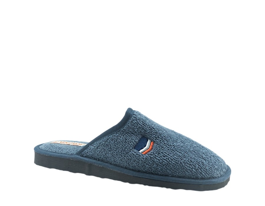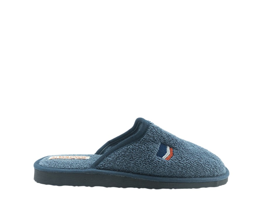 Ανδρικές παντόφλες από την εταιρία KOLOVOS σε μπλε χρώμα από μαλακό ύφασμα και αντιολισθητική σόλα. Ιδανικές για να σας συντροφεύουν στις καθημερινές σας δραστηριότητες στο σπίτι!