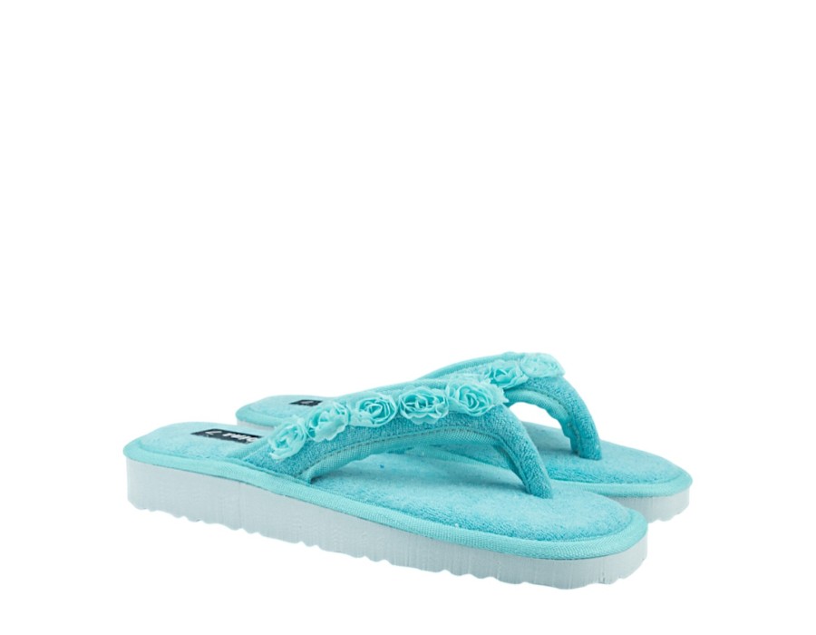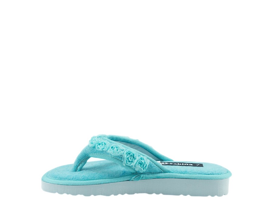 Γυναικείες εξώφτερνες παντόφλες από την ανοιξιάτικη συλλογή της SABINA, σε γαλάζιο χρώμα. Στιλάτες ανοιξιάτικες παντόφλες, προσφέρουν άνεση και δροσερή αίσθηση ενώ είναι χαρακτηριστικά μαλακές στο πάτημα. Κατασκευασμένες από πρώτης ποιότητας ύφασμα και αντιολισθητικό πάτο από συνθετικό υλικό.