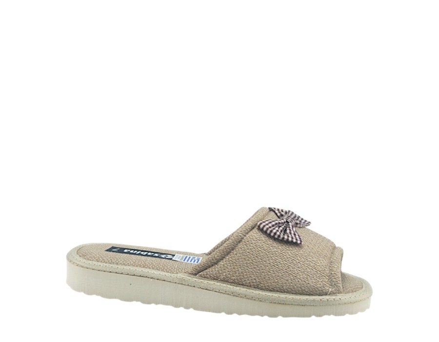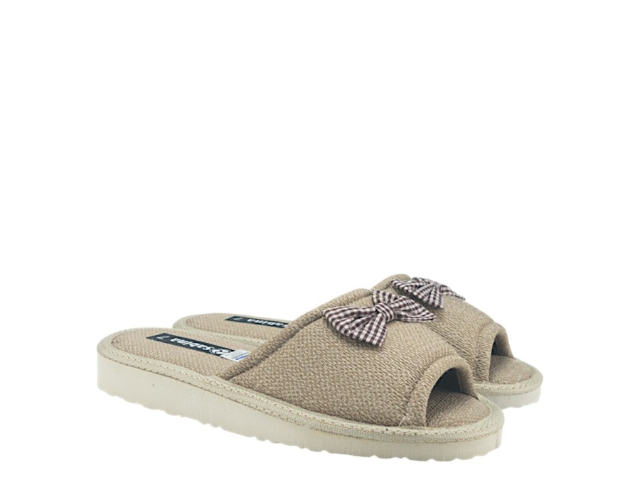Γυναικείες άνετες παντόφλες σε μπεζ χρώμα από την εταιρεία SABINA. Διαθέτουν εξαιρετικά μαλακό ύφασμα και αντιολισθητική σόλα. Ιδανικές για να σας χαρίσουν άνεση και ξεκούραση στο σπίτι.