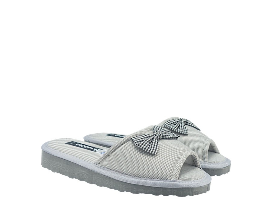 Γυναικείες υφασμάτινες παντόφλες ανοιχτές μπροστά εξαιρετικής ποιότητας. Διαθέτουν μαλακό πατάκι και αντιολισθητική σόλα. Είναι από ύφασμα, ελαστικό και φιλικό προς το δέρμα.