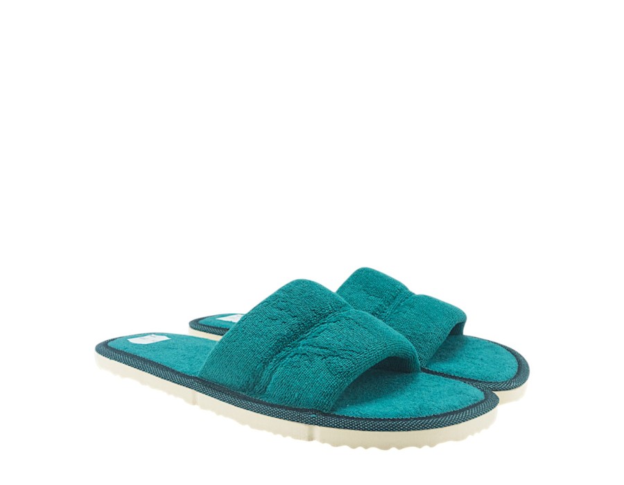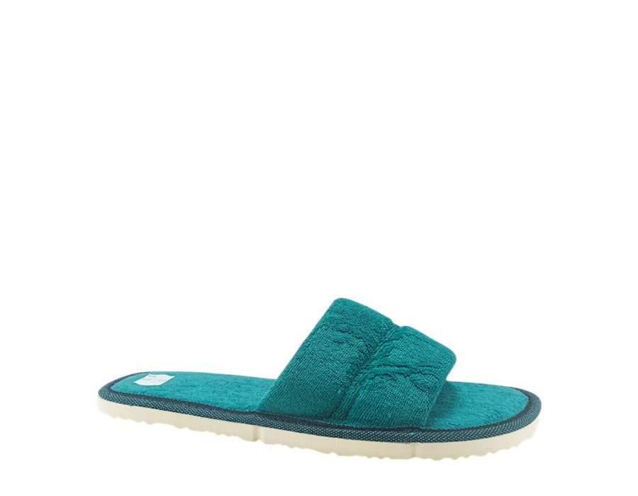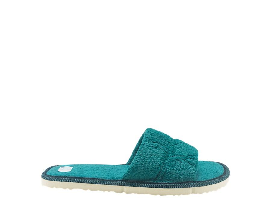 Γυναικείες παντόφλες από την ανοιξιάτικη συλλογή της PAPAVRAMIDIS, σε πράσινο χρώμα. Στιλάτες ανοιξιάτικες παντόφλες, προσφέρουν άνεση και δροσερή αίσθηση ενώ είναι χαρακτηριστικά μαλακές στο πάτημα. Κατασκευασμένες από πρώτης ποιότητας ύφασμα και αντιολισθητικό πάτο από συνθετικό υλικό.