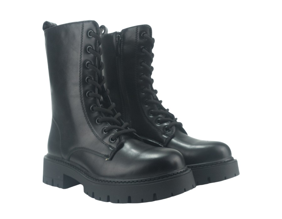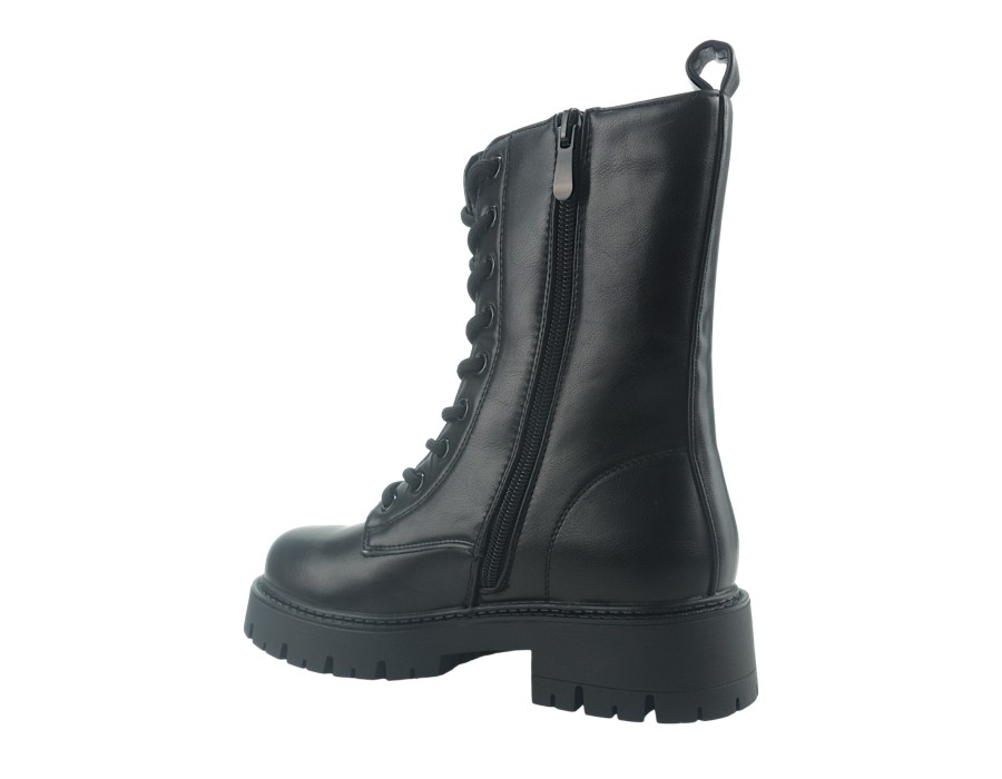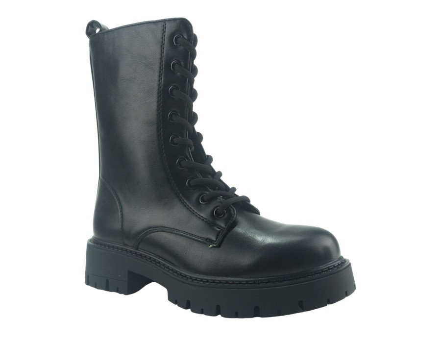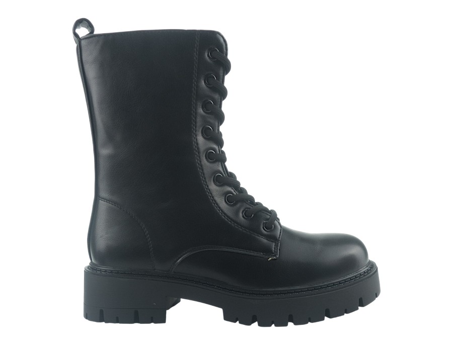 Γυναικείο μποτάκι σε μαύρο χρώμα. Κατασκευασμένο από συνθετικό δέρμα υψηλής ποιότητας. Το ύψος του τακουνιού είναι 5 εκ.