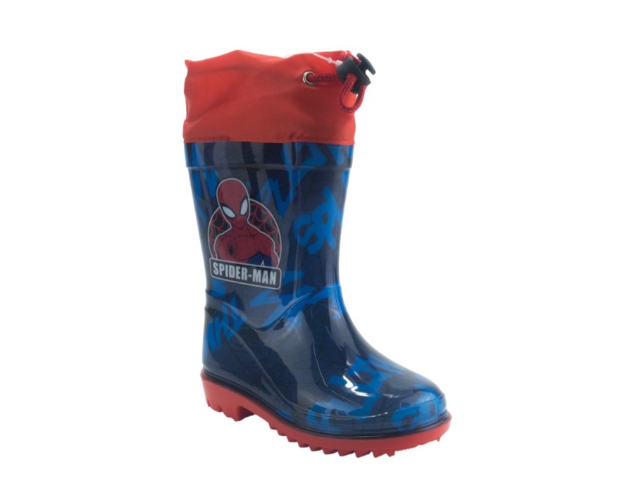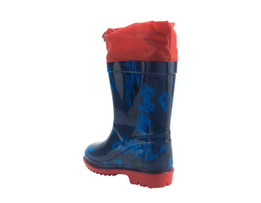 Παιδική γαλότσα από αδιάβροχο πλαστικό της εταιρίας DISNEY σε μπλε απόχρωση με κόκκινο κολάρο για προστασία από το νερό και αντιολισθητικό πλαστικό που προσφέρει σταθερότητα.