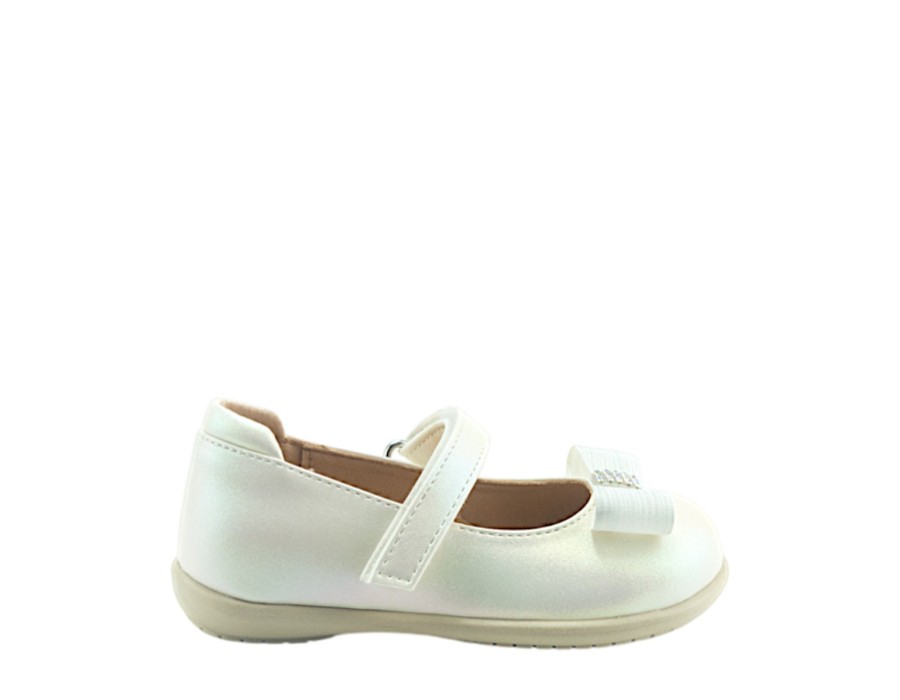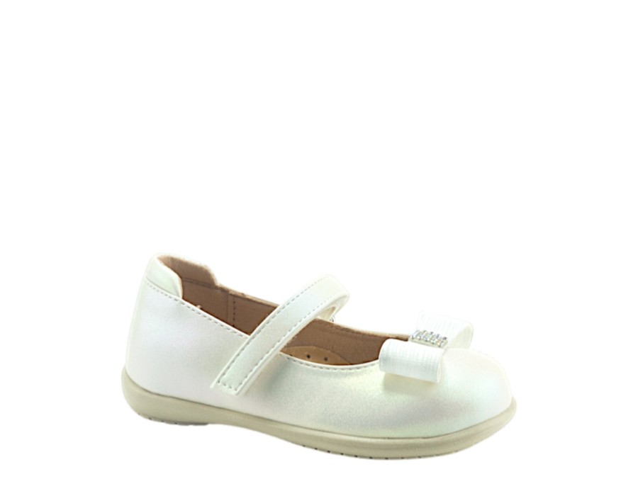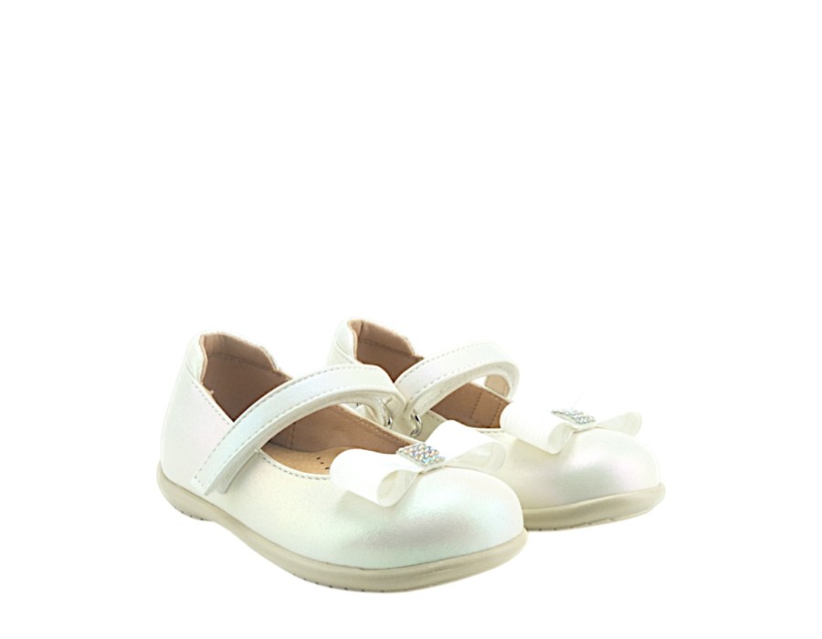 Παιδικές μπαλαρίνες σε αστραφτερό χρώμα του πάγου, κατασκευασμένες από γνήσιο δέρμα σε συνδυασμό με συνθετικό δέρμα. Σε ένα χαριτωμένο σχέδιο, που θα χαρίσει στις μικρές σας, παραμυθένιες εμφανίσεις.