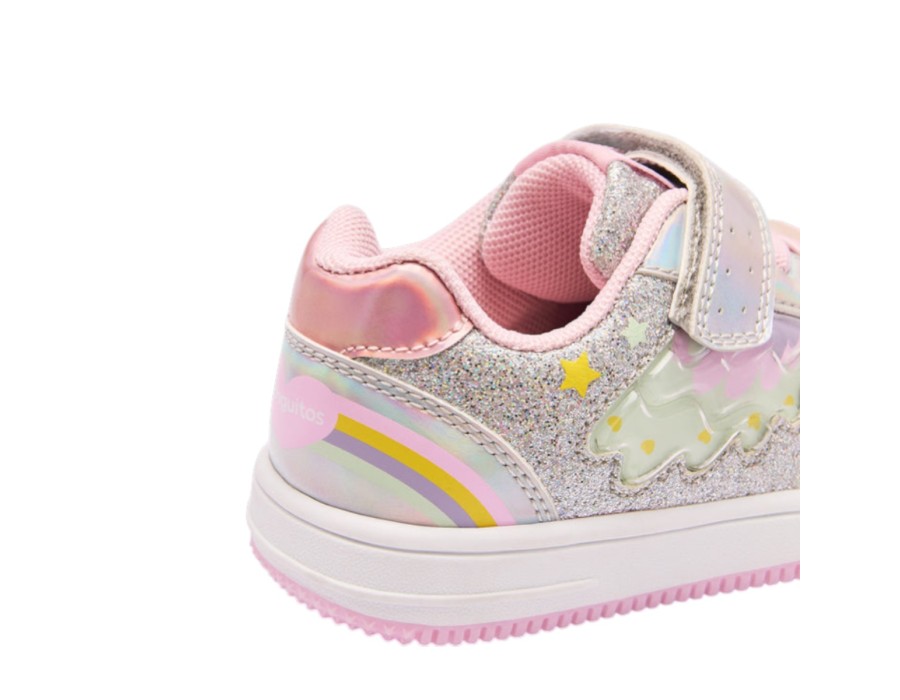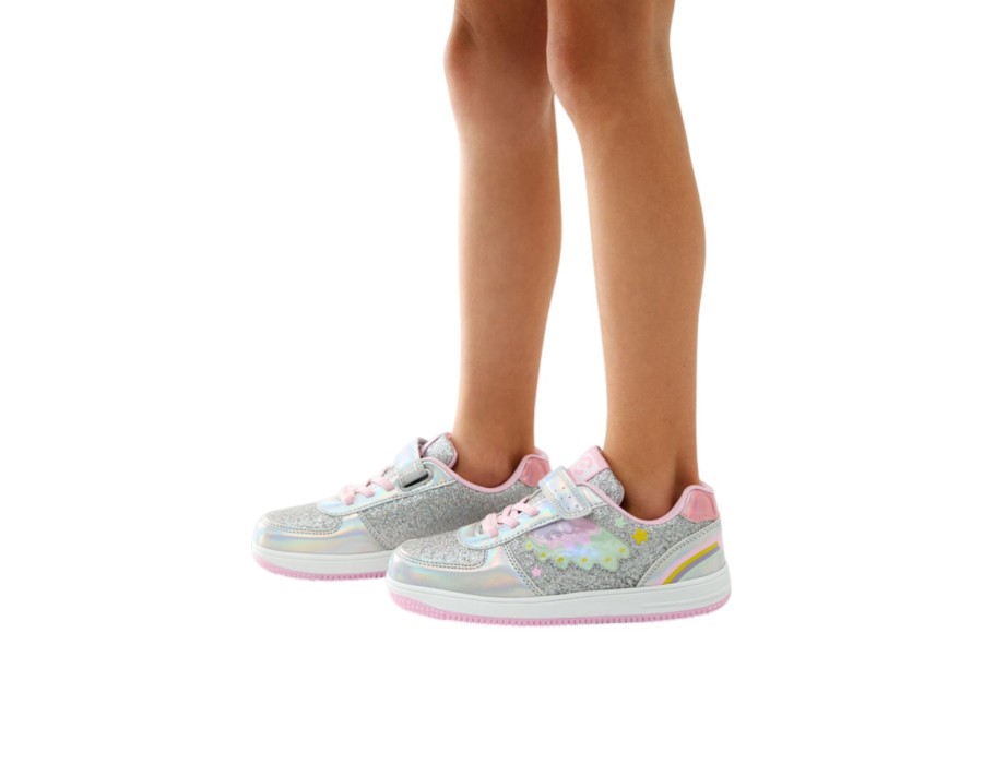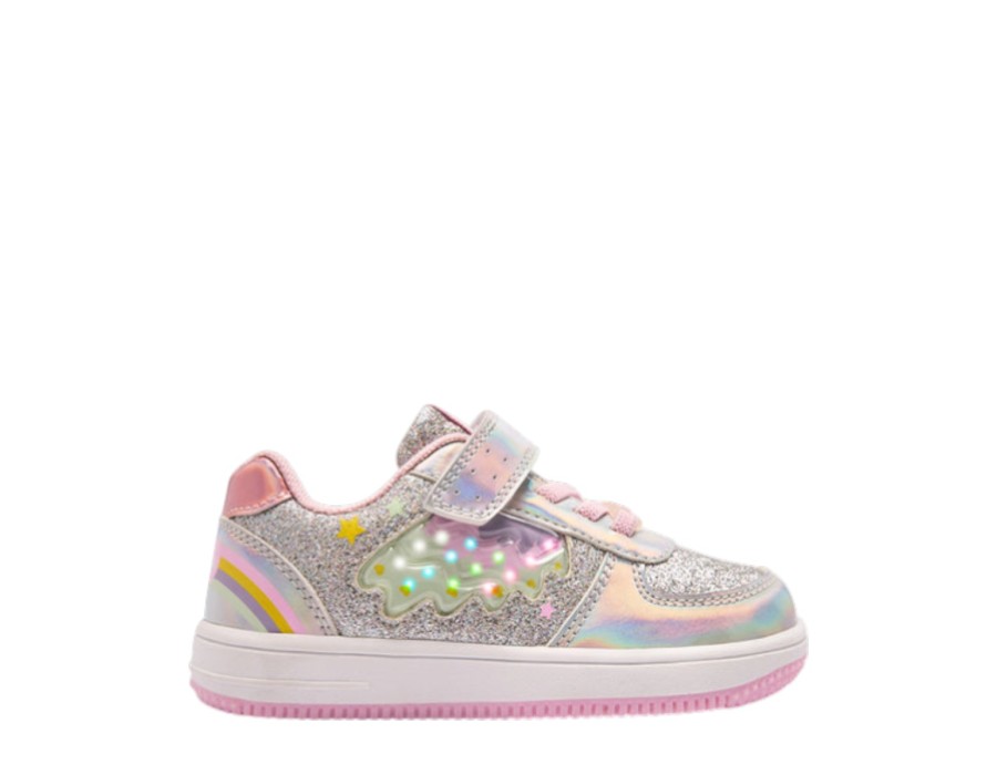 Τα αθλητικά παπούτσια Glitter Rainbow Light είναι ιδανικά για να προσθέσετε μια πινελιά χρώματος και διασκέδασης σε κάθε βήμα. Το ασημί glitter σχέδιό τους με μεταλλικά φινιρίσματα διαθέτει μια χαρούμενη λεπτομέρεια ουράνιου τόξου στη φτέρνα και τα πλαϊνά φώτα που δημιουργούν ένα φωτεινό και εντυπωσιακό εφέ.