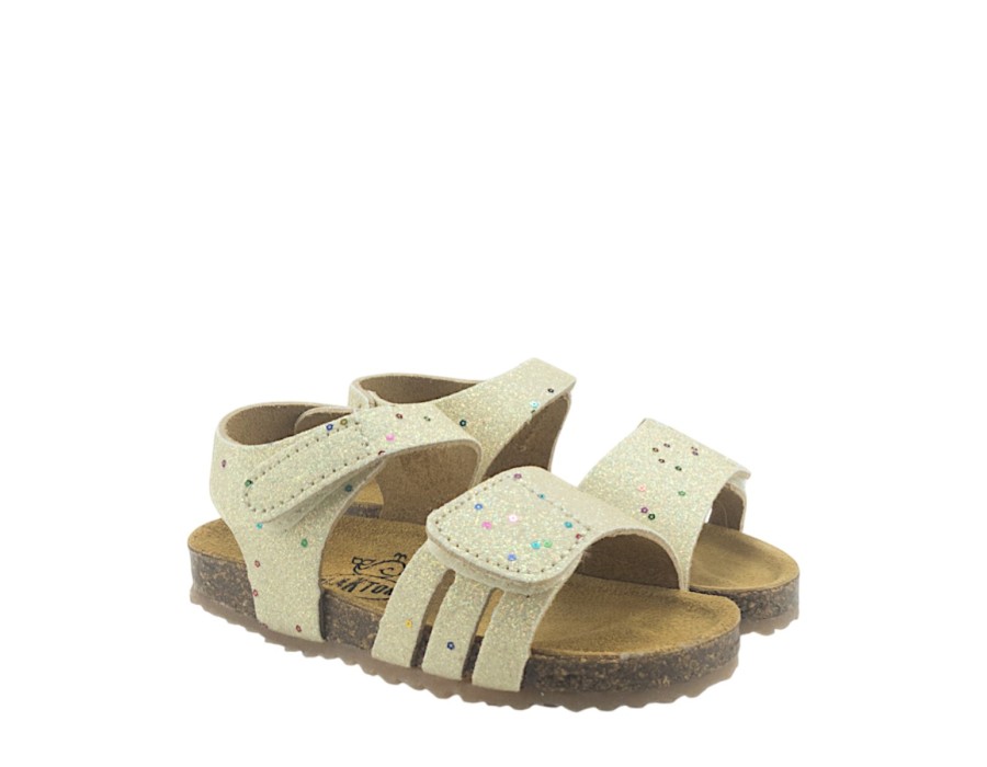 Παιδικά πέδιλα κατασκευασμένα από δέρμα, συνθετικό δέρμα και ύφασμα σε ένα σχέδιο με λαμπερή όψη, για εμφανίσεις με στυλ. Ιδανικό για κάθε δραστηριότητα των μικρών σας κοριτσιών. Διαθέτει, δερμάτινο ανατομικό πάτο και κλείσιμο με ρυθμιζόμενο λουράκι, για σταθερά και άνετα βήματα.