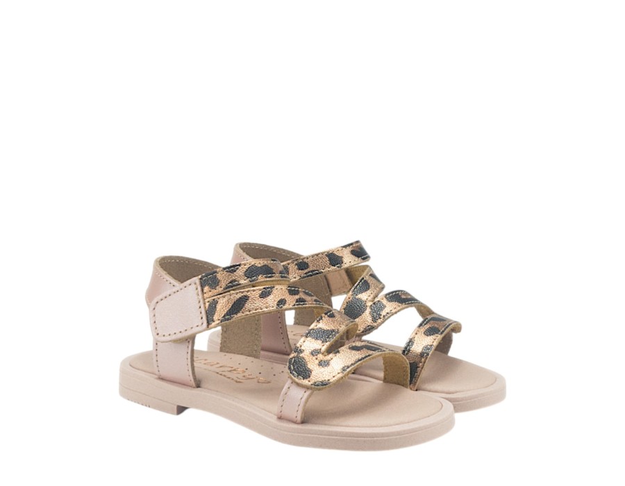 Παιδικά πέδιλα κατασκευασμένα από δέρμα και συνθετικό δέρμα σε ένα φανταστικό σχέδιο σε λεοπάρ χρώμα, για εμφανίσεις με στυλ. Ιδανικό για κάθε δραστηριότητα των μικρών σας κοριτσιών. Διαθέτει, δερμάτινο ανατομικό πάτο και κλείσιμο με ρυθμιζόμενο λουράκι, για σταθερά και άνετα βήματα.