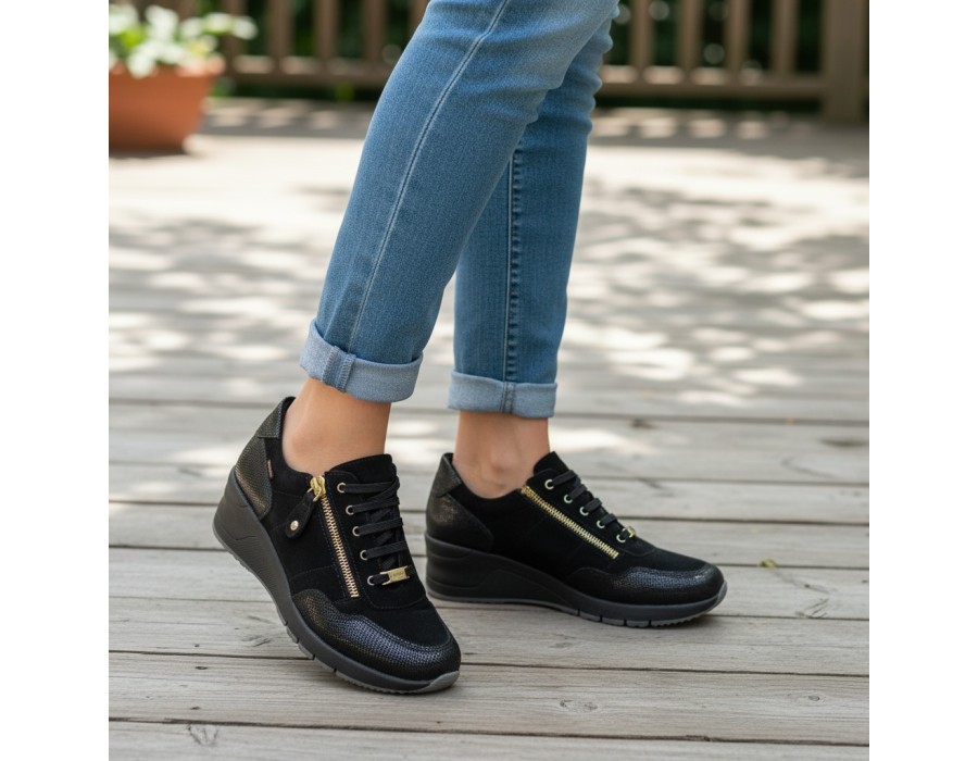 Casual Ragazza από δέρμα με φερμουάρ στην εξωτερική πλευρά και κορδόνι στο κέντρο. Συνδυασμός δέματος με δέρμα καστόρ. Ενισχυμένο μαξιλαράκι στη φτέρνα. Ελαφριά, αντιολισθητική σφήνα σόλα 3 εκ. και ενισχυμένος δερμάτινος πάτος για άνετο πάτημα.