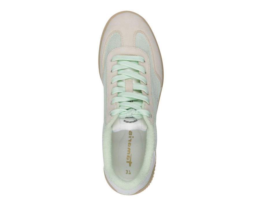 Γυναικείο sneaker παπούτσι του οίκου TAMARIS στο χρώμα της μέντας, είναι κατασκευασμένο από δέρμα, υψηλής ποιότητας συνθετικό δέρμα και ύφασμα. Διαθέτει σόλα υψηλής ποιότητας ενώ το ύψος του τακουνιού είναι 1,5 εκ.